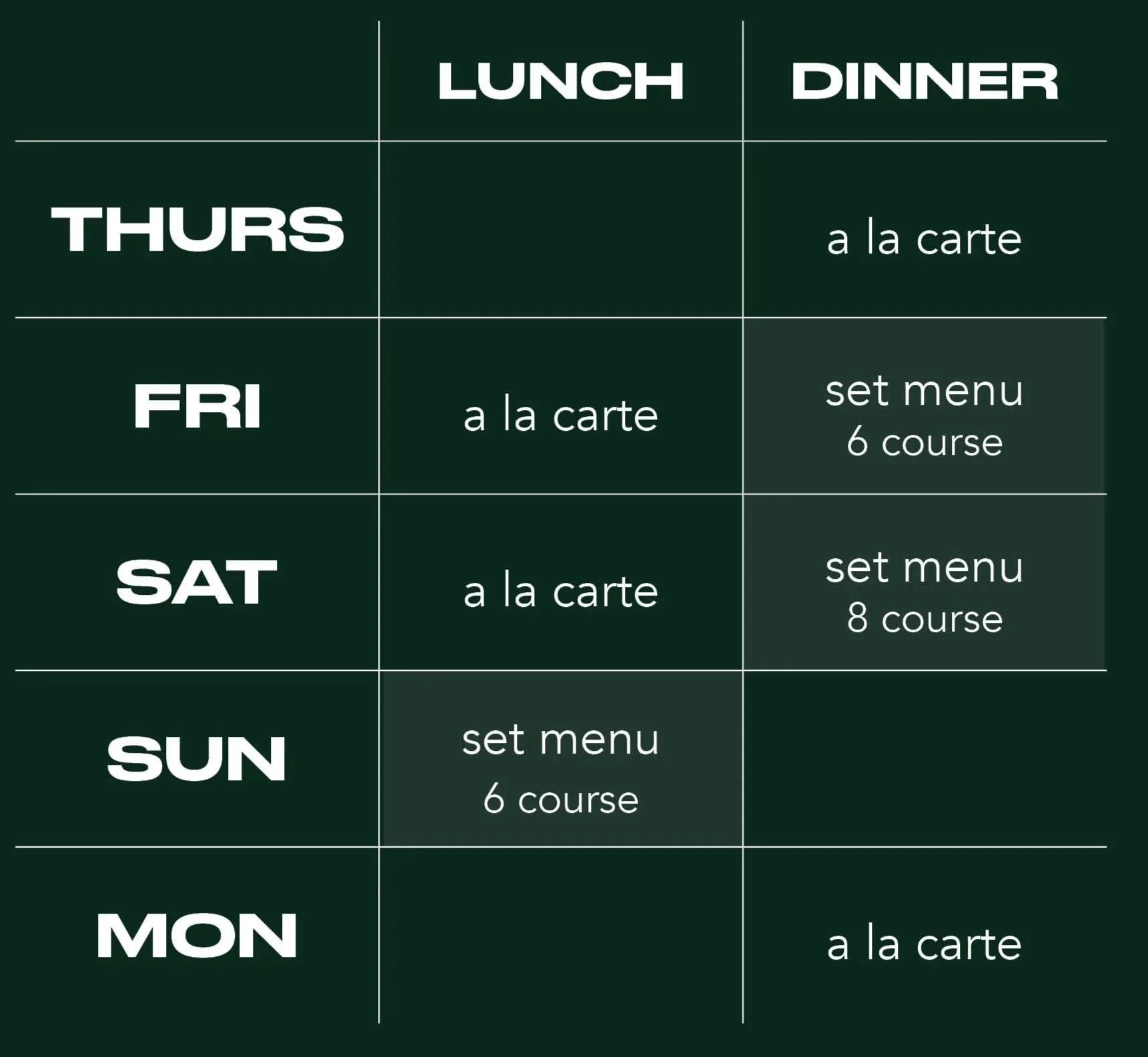 FRI: LUNCH a la carte + DINNER set menu (6)