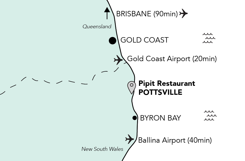 Pipit is located in Pottsville on the Tweed Coast of Northern NSW. Positioned between Byron Bay and the Gold Coast, our region and restaurant is a destination for locals and visitors seeking award-winning dining in a relaxed coastal setting.